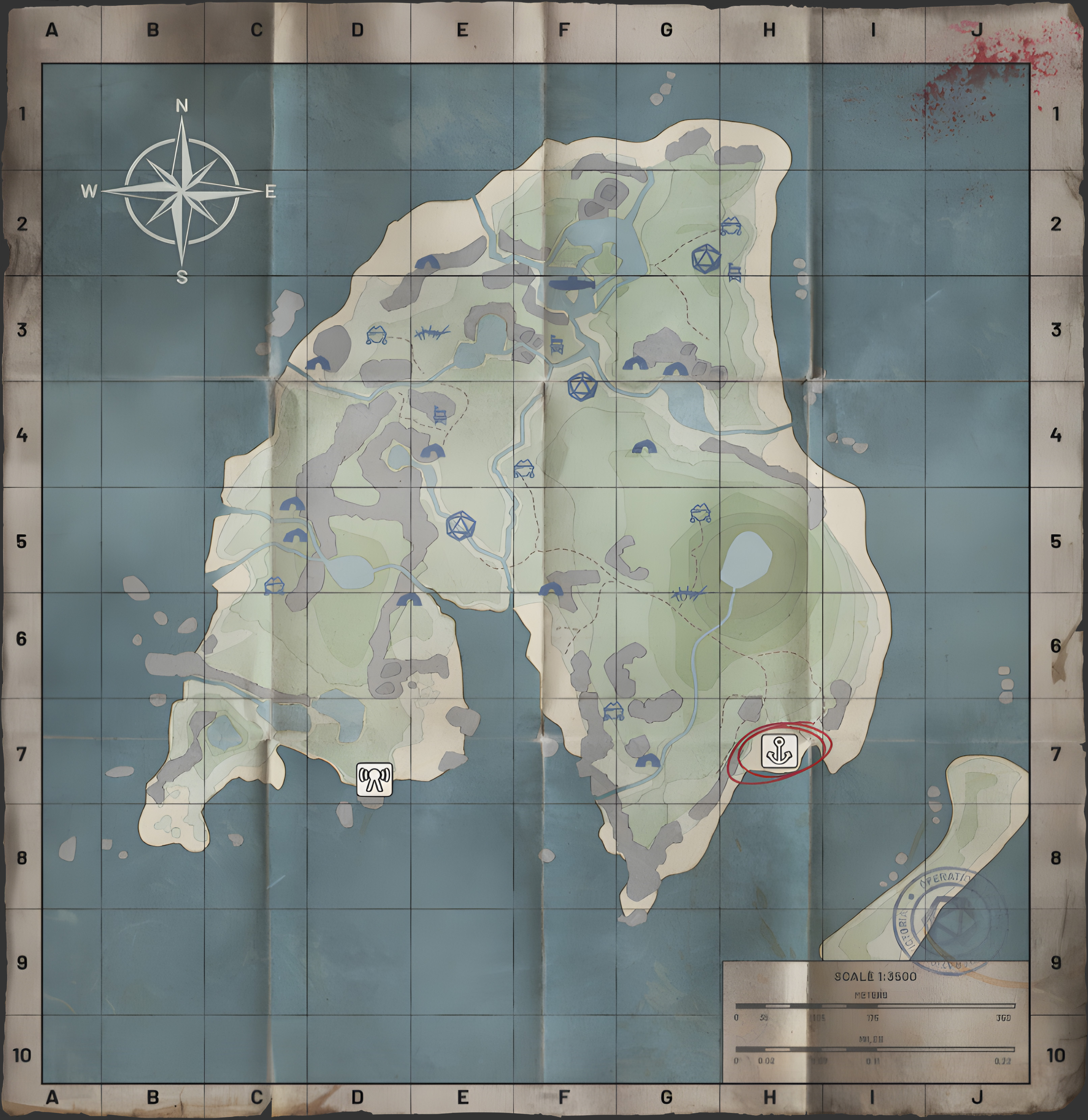 You found a strange map in the hyena cave next to Jess's body. Wade will know how to read it. You head back to camp to show it to her and give her the regretful news about her friend.